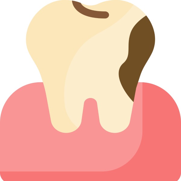 - Υπάρχει εκτεταμένη τερηδόνα κάτω από τη γραμμή των ούλων.